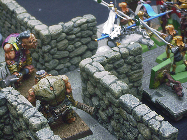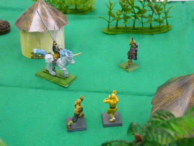 イリュージョンと陣形、さらには村人の人質を駆使して、PCを止めようとする傭兵団。