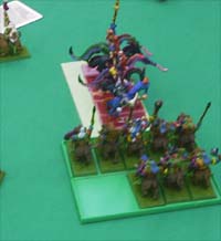 激突する両軍。デモネットの騎馬隊とデーモンプリンスが敵陣を側面攻撃し、総大将のグレーターデーモンが、ナイトゴブリンに迫っています。