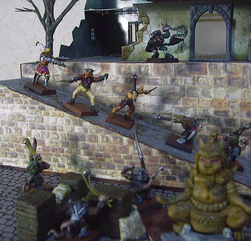 | モードハイムは、ウォーハンマーと同じゲームズワークショップ社が発売した、小規模戦闘 型のミニチュアゲームです。日本語版は発売されていませんが、まるまは良いゲームとして これを推しております。 高低差や様々な障害物が存在する廃墟を戦場とした、見ているだけで楽しいゲーム風景。 キャラクターの成長を取り入れ、キャンペーンゲームを行う、RPG的要素。 それらはまたウォーハンマーにはない魅力だったりします。 また、ウォーバンドという小規模集団で戦うため、少ないミニチュアでも始められることも、 見逃せないポイントでしょう。まるまが知り合った初心者の方をしばしばお誘いするのも、 その辺に理由があります。 さて、もしモードハイムを遊ぶのに興味を持たれたら、次のページへどうぞ。 ●「日本版フィギュアでウォーバンドを作ろう」に進む ●モードハイムメニューに戻る ●メインに戻る |