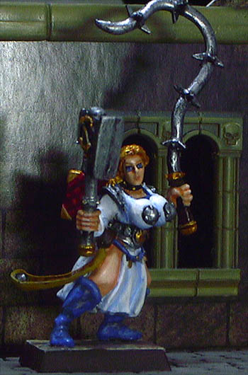 ●● Illustration Side ●●ウォーハンマーアートギャラリーに掲載の、むちむち修道女・トルーデです。 (ポイント) ・爆乳 ・身分の高さを感じさせない簡素な衣服 ・巨大なシグマーハンマー ・ながーいスティールウィップ ・ふともも ・おさげ この辺りをポイントにして、フィギュアをコンバージョン(改造)してみましょう! |